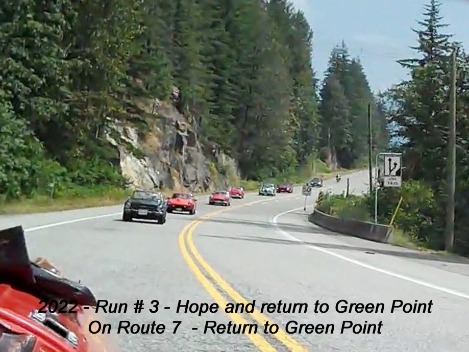 The Run as planned was to Hope and after a pit-stop at Dairy Queen, on to Manning Park Lodge for a picnic lunch. However, the advance weather forecast the day before indicated the potential for violent thunder storms around Manning Park. As such, and discretion being the better part of valor, the route was changed to a turn-around in Hope and back to Green Point on Harrison Lake for the picnic lunch.