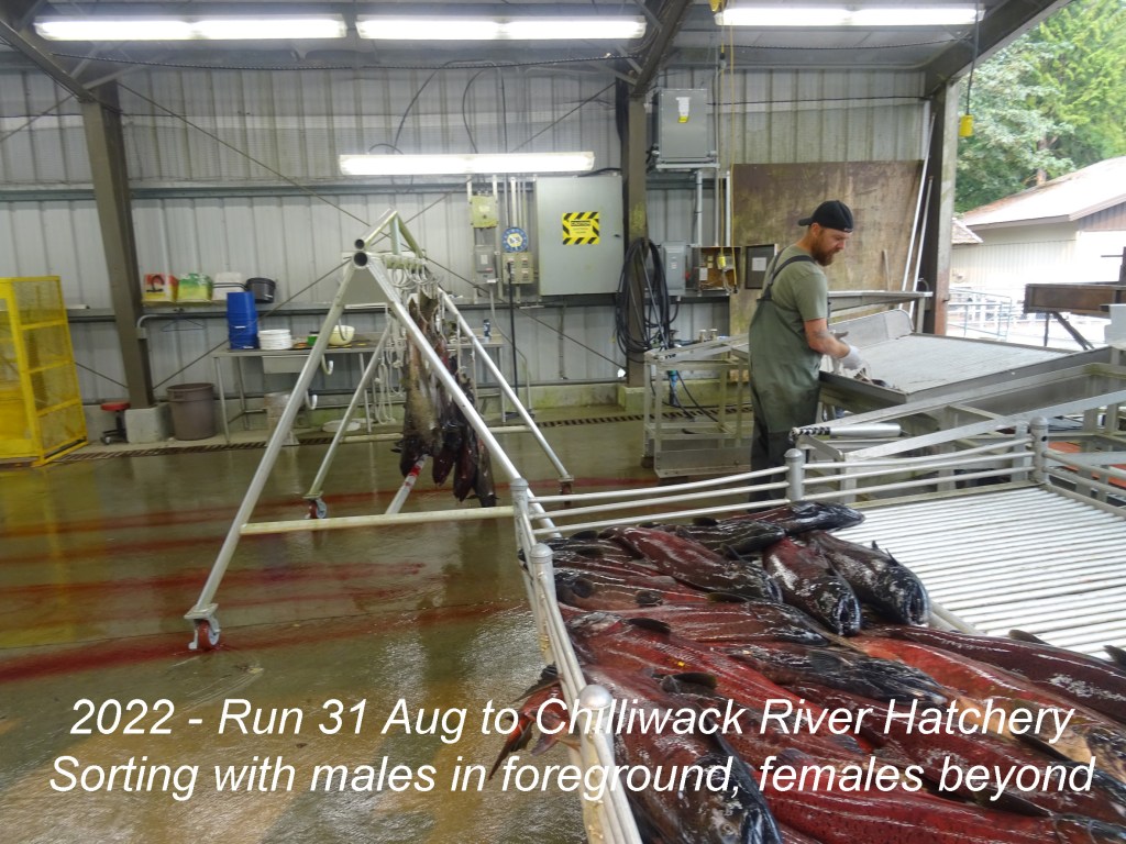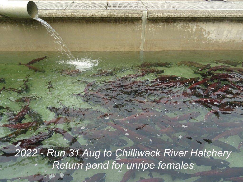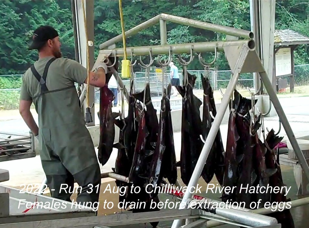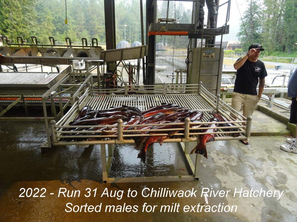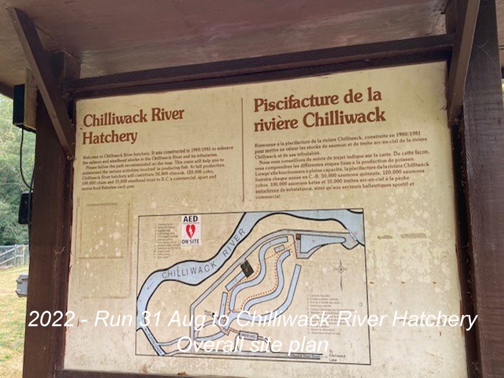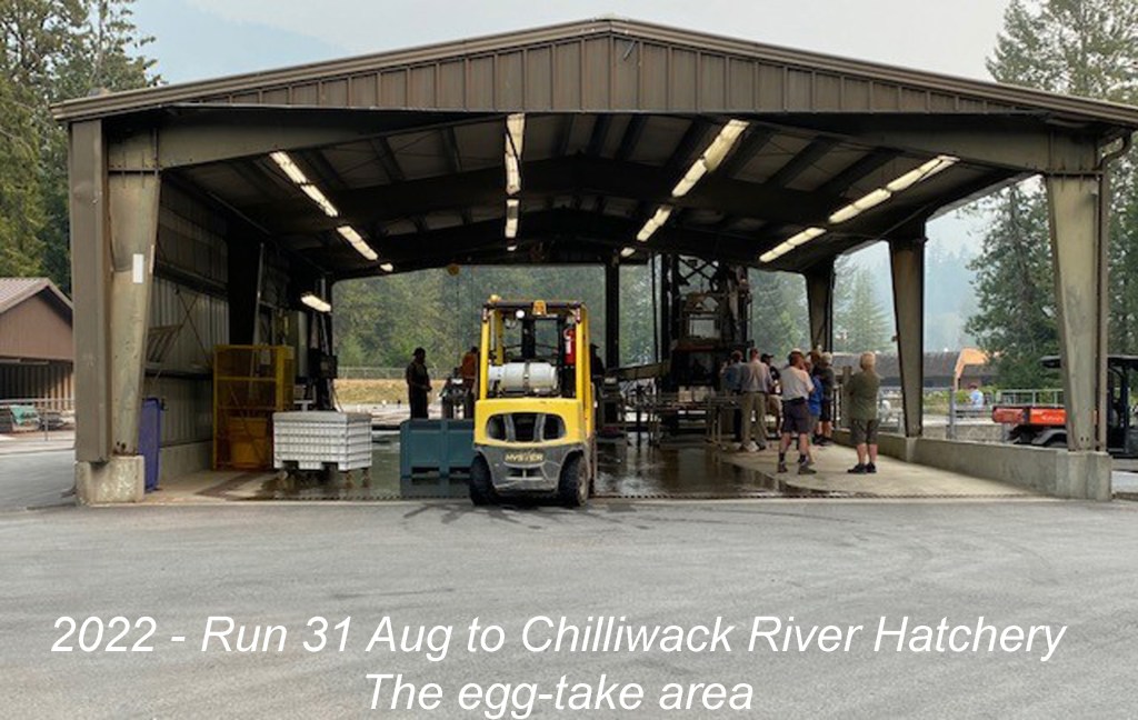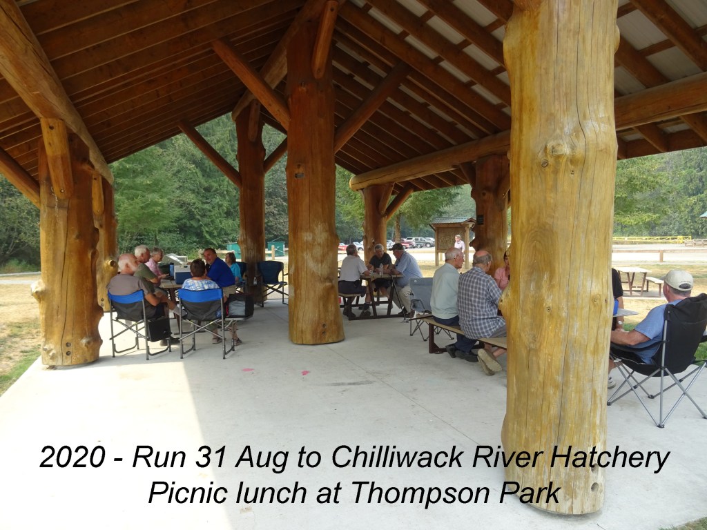 In early August a run to the fish hatchery some 20km up the Chilliwack Lake Road was suggested in order to witness egg-taking from returning salmon and to have an overall look around the facility. An enquiry visit was made and advice given that an egg-taking from returning Summer Chinook salmon was being scheduled for Wednesday, 31 August. Advice was also given that a visit by the Club would be quite welcome and for better security, parking within the facility could be arranged, rather than at the public parking area near the road.
