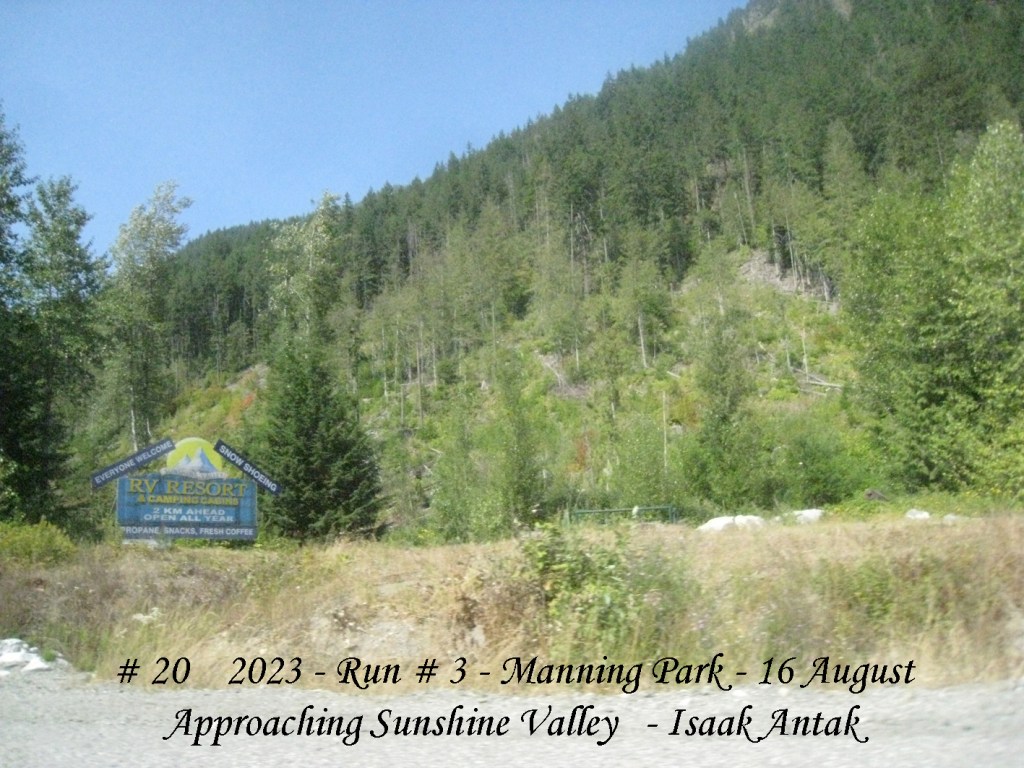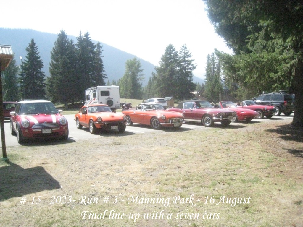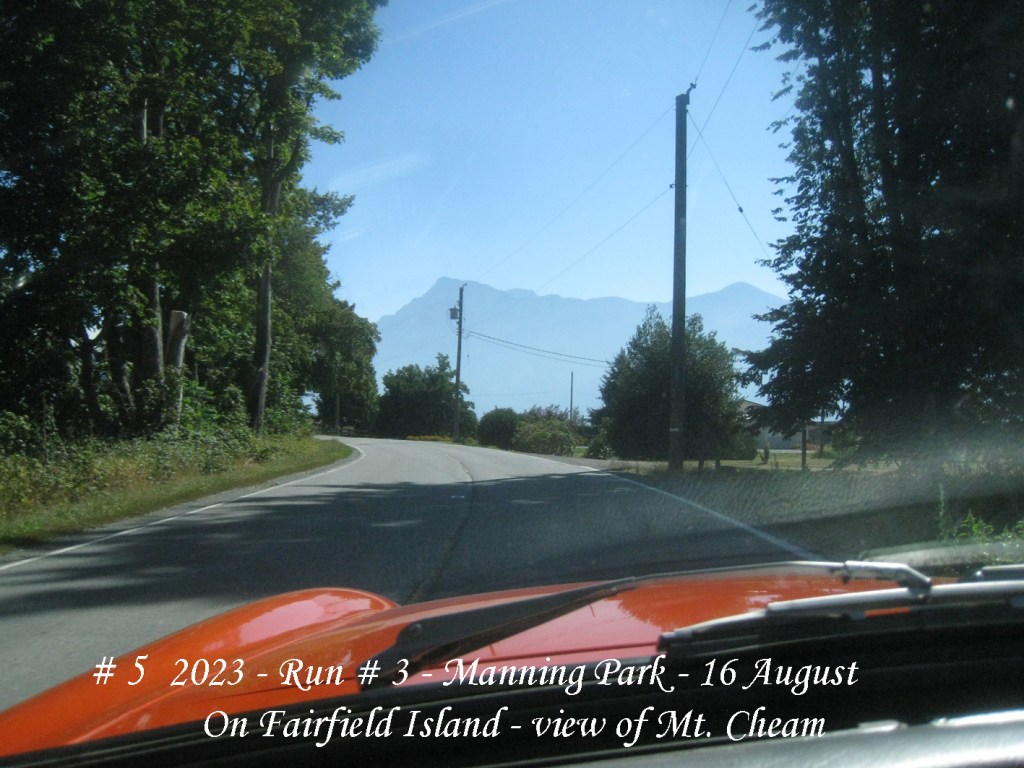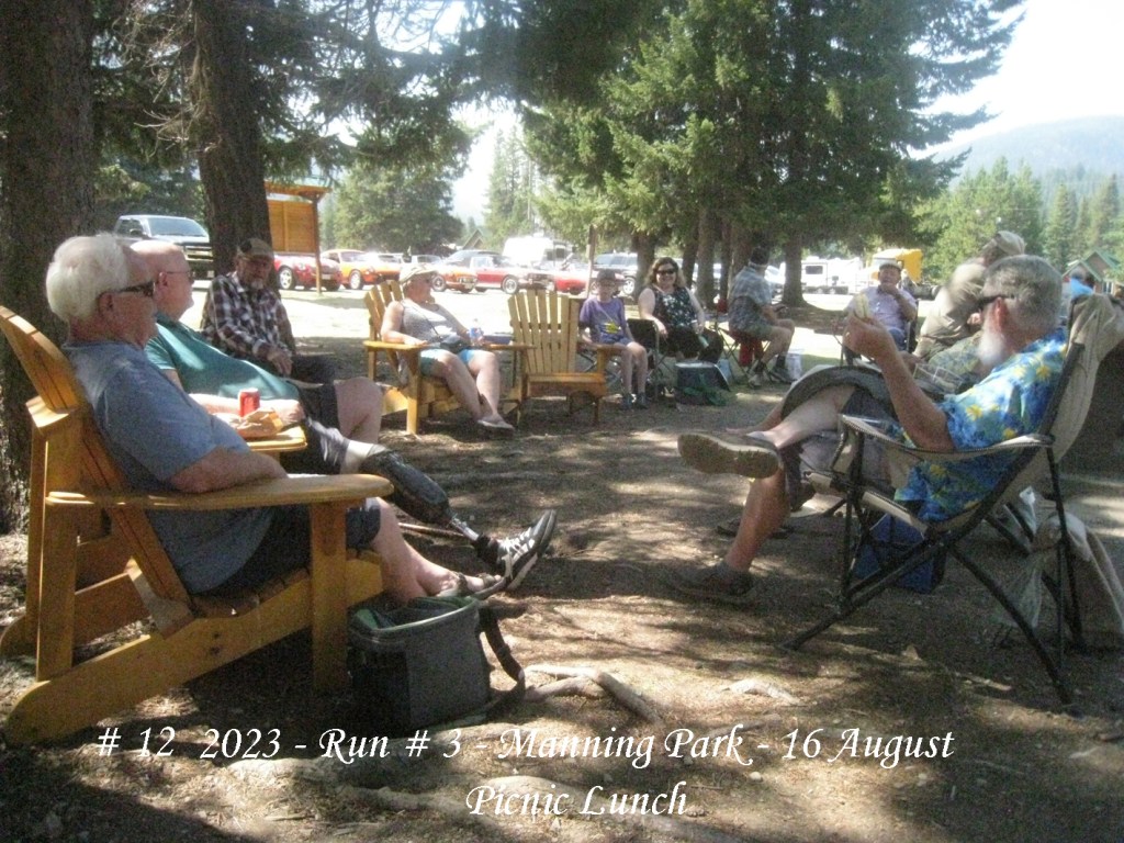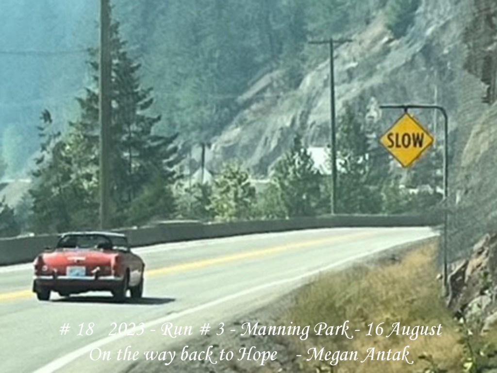 There were nine replies advising intent to come on the Run, but then there were four Regrets for various reasons so it looked as if it might be a bit of a meager five-car Run. Notwithstanding, on the day a shady spot was found in the UFV Chilliwack Parking Lot # 7 for the 10:15am meet-up and two more cars turned up. Given the forecast for 32deg at Hope and 28deg at Manning Park Lodge, and the overall distance and time, Michael, as Runs Coordinator, asked if perhaps a shorter Run to say Chilliwack Lake or Green Point might be considered. The majority opinion was that since Manning Park was what people had come along for, let’s do it. So, at 10:30am, the seven cars set off accordingly. Getting to Fairfield Island went without any problems apart from a couple of separations at traffic lights, but at the pull-in at the Fairfield Scouts Hall for a re-group, we’d lost one car…. After a wait of several minutes, and since no car came, the Run was continued. As ever, the route through Fairfield Island gave onto pleasant vistas of farmland and the mountains. Having crossed the Agassiz bridge, it was round onto Route 7. The traffic was minimal and, at 90kph, we slowly overhauled an east-going freight train. The pit-stop by 11:50am at the Dairy Queen in Hope enabled a leg-stretch. Michael had a thermometer and 31deg was noted. The missing car had yet to appear when we set off at 12:12pm. There was minimal traffic and various uphill gradients and turns made for an interesting drive and, for some, the need to drop out of overdrive and swap cogs now and then. We arrived at Manning Park by 1:05pm with the thermometer registering 29deg along with a gentle breeze. We easily found a shady area with a picnic table and several Adirondak chairs, so, with brought-along camping chairs, there was seating for one and all. The missing car arrived and joined the parked line-up and the lunch. It transpired that a turning had been missed…. Two chipmunks were noted to be keeping a look-out for any tidbits that might be lying around. Ivan Antak’s grandson Isaac went to see one, but it skittered away in good time. Everybody said they were glad we’d come on the planned Run and as usual, people made their own way home. Isaac had come along with his mother Megan with Ivan in the family 4×4, so when it came time to leave, Michael offered the 9-year old a ride along with the camera to take pictures on the way. Being mostly down-hill and without much traffic it was an easy drive to Hope where Isaac re-joined his family for their journey home. Upon review, Isaac had taken some good photos. Megan had also taken some at several locations and duly forwarded them.