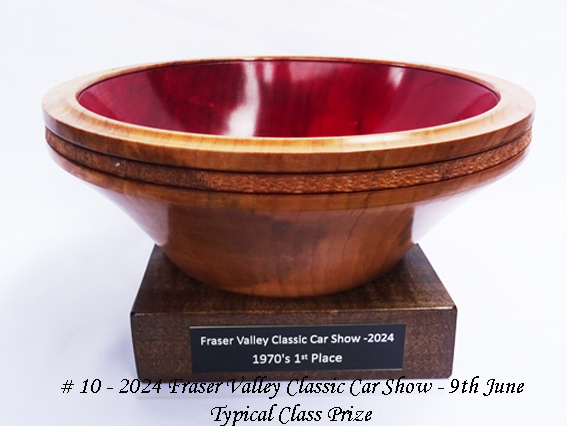 Michael Hamilton-Clark once again made the eight Class prizes and the People’s Choice prize. They were 10-in x 3.5-in bowls in local Maple with pedestals to take the descriptive plaques.