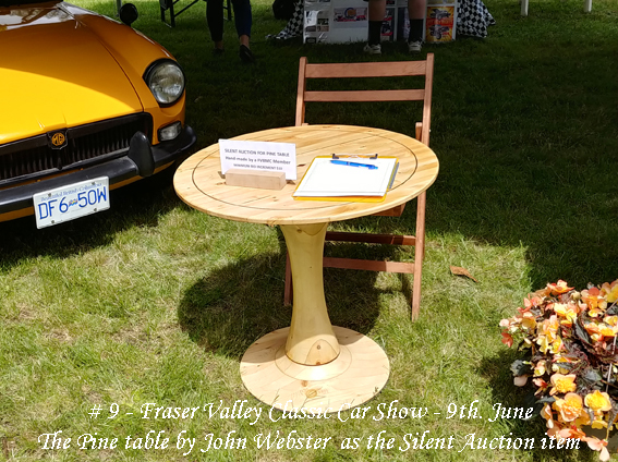 Laurie Rae donated a canary-yellow 1962 MGB on which he had done restoration work to bring it to a roadworthy state and the Fraser Valley Health Care Foundation took out a license for an on-line raffle with an upset limit of $9,500. The winner was from Victoria with delivery effected to the Tsawwassen ferry terminal for his collection.