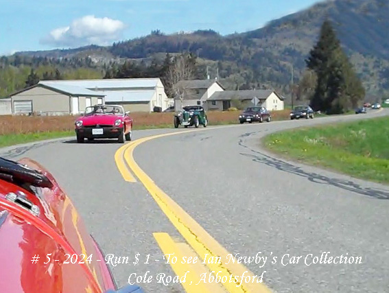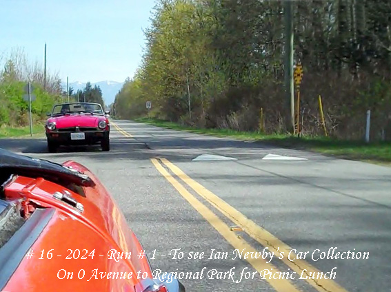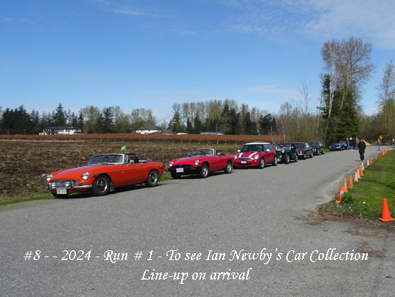 We were lucky with the weather – after a wet spell, the weather forecast was for a sunny day starting around 5˚˚ and up to 16˚ and that was what we got – though those in Hope advised a start of only a 2˚ , so up with the roof… By 10:30am we had six vehicles lined up in Chilliwack and ready to go along with one who dropped by to say “Hi” but not coming on the Run. By now the chill was out of the air and it was pleasant run over to Yarrow and Majuba Hill and Campbell Road to Hougan Park to meet up with four more vehicles. The cavalcade of 10 set off at 11.15am. Cole Road was closed so we had to go west on Wells Line and then down past Birchwood Dairy to Whatcom and south to join Vye. Then it was west and over the new overpass (a most welcome item!) and, after a pull-over to re-group, to continue on Huntingdon and No. 8 Road to H/way 13 and north to Aldergrove. We arrived at just on Noon as planned at Ian’s place at 3474 -262 Street and found parking.