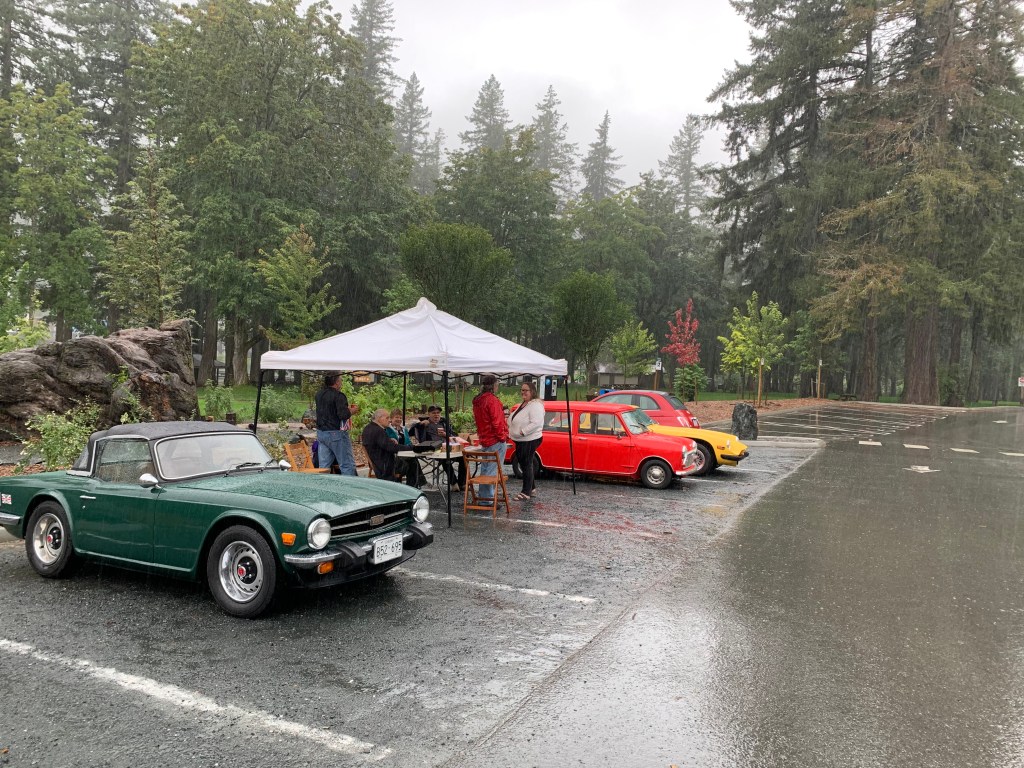 After the very hot and dry summer that we experienced, a bit of rain was a welcome respite. However, the weather Gods decided to bring the rain down on our 27th Annual Picnic at Cultus Lake on Sunday, September 12. Never-the-less, a group of hardy souls made it there with their British vehicles. As the day wore on and the rain eased, other members appeared with their daily drivers to see what was transpiring, and to partake in the Corn roast and hot dog fare.