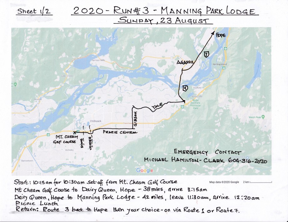 2020 Run # 3 – Sunday, 23 August 2020 to Manning Park Lodge