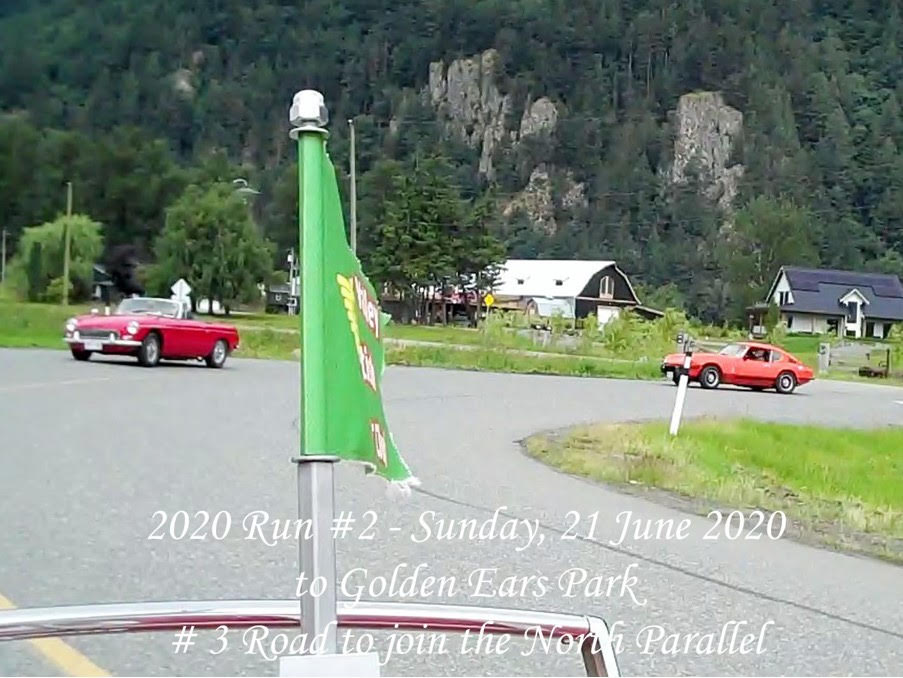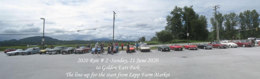 One car did not actually come on the Run – the driver came for the line-up and a chat, but had a Fathers Day lunch to attend and another had advised that he’d start, but would maybe not come the full distance. The cross-country to Fort Langley was without incident and everyone found their way across the Golden Ears Bridge to 128 Av, then 216 St and 132 Av. However confusion struck at a roundabout where an exit signed for Fern Crescent was expected but not found by the leader who went round to continue on 132 Av and realized he’d gone astray, so pulled over with five cars behind him. A check on a phone with GPS indicated a back-track was required and the rest of the Run were sighted coming up, so the leader set off to do a GPS-guided return loop through a neighbourhood. Fern Crescent was found and this led to Golden Ears Parkway and the parking area at Alouette Lake South Beach at just after 1:00pm with 63.2 miles being indicated as having been run from the Chilliwack start. The weather had remained dry and had brightened somewhat. Some of the group set up chairs for a picnic on the grass in the carpark median, others went down to the Beach public area where there were Park-style wooden picnic tables. People started to leave around 1:45pm and most were gone by 2:00pm. The return route was by personal choice, some electing to go back via the Golden Ears bridge or via Mission, others going back to Chilliwack via Dewdney Trunk and Route 7 to Agassiz. With this route, the total distance run was indicated as 143.4 miles. There were no reports of any problems.