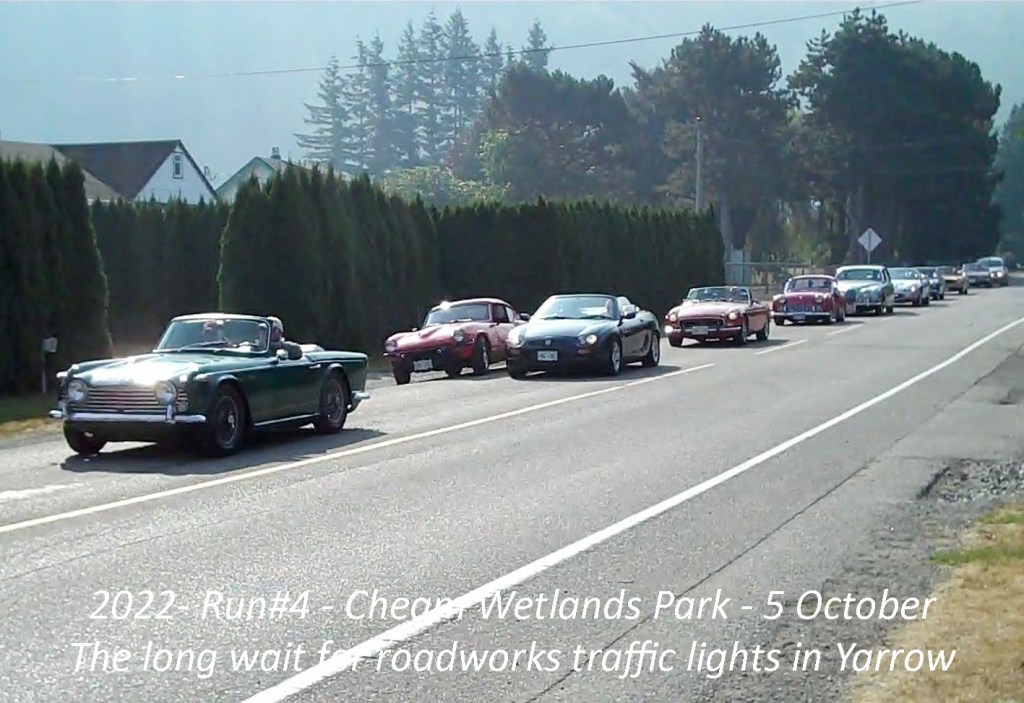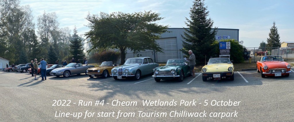 The day dawned with a bit of a haze, but not really with a noticeable smell of woodsmoke. The meet-up was at the Tourism Chilliwack parking lot on Luckakuck Road, 10:15am for a 10:30am set-off. By then, there was some warmth in the sun and there were 14 vehicles, and the haze did not seem to have put people off. Bence McIntyre with his immaculate 1952 Morris Oxford advised he’d come for a chat but would not be coming on the Run, so it was 13 of us that set off to the west along Yale Road, then south on Chadsey Road, over the Vedder Canal Bridge to go south on Boundary Road. After the quick right then left on No. 3 Road, it was on south again on Boundary Road to a hard left onto Belrose Road and on up and over Majuba Hill. At the stop on Wilson Road to take a right onto Yarrow Central we got stalled by traffic lights controlling work on putting in a new culvert. Having waited through several cycles with no traffic coming through, the decision was made to turn west to go through Yarrow and re-trace our steps back to Keith Wilson Road to go east all the way to Vedder Road and then follow the leader…… At a pull-over to re-group just before No. 3 Road, one car decided to leave. By the time Vedder Road was reached it was 11:45am, so rather than take a right to go to Cultus Lake and Frost Road and then back, taking a probable 40 minutes or so, the leader took a left to get back onto the Route to go north to Thomas Road. Then it was all as planned – north on Chilliwack River Road, east on Prairie Central, north on Gibson Road, east on Yale Road through Rosedale and on to the finish at Cheam Wetlands Lake Regional Park, arriving at 12:15pm to see Bruce Webster was there with his lovely 1952 Alvis TA 21 drop-head coupé. Once we had lined up, it was clear we had lost three vehicles…. As it was, they turned up around 45 minutes later. They had become separated somewhere along Keith Wilson Road and had in fact gone the full route out to the end of Frost Road, not realizing with no leader to follow, that the main body of cars had cut out that part….. After some jocularity, they joined in for a somewhat late lunch and it was agreed by all that, despite the unexpected re-route, it had been a good Run and the Wetlands made a nice location for the picnic lunch. People started leaving around 2:00pm and thus ended the last organized Run for the year.