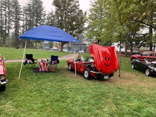The weather forecast was to be for a pleasant fall day. However, that was before the wind decided to carry the smoke from forest fires south of the border northward. The result was that the day ended up overcast and smoky. 23 cars appeared and in spite of the Pandemic and smoke, the annual tradition of the Picnic was maintained. This was the 26th year the picnic has been held, so now we can officially say it is over a quarter of a century old.