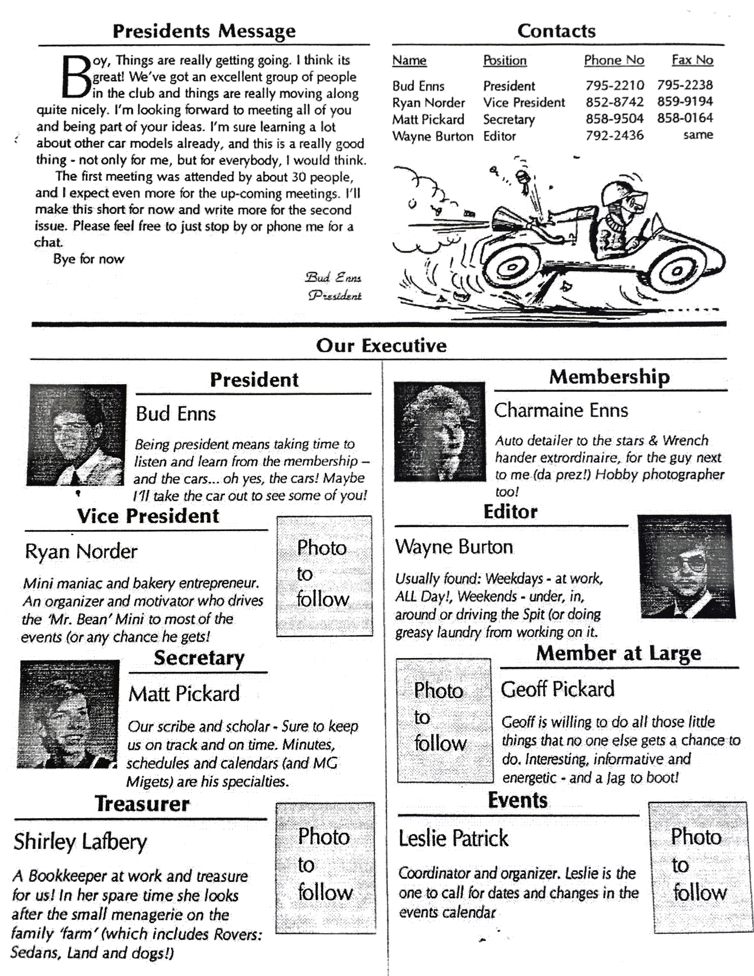 For the historians among us Harv sent us a copy of the first club newsletter and the first club minutes.