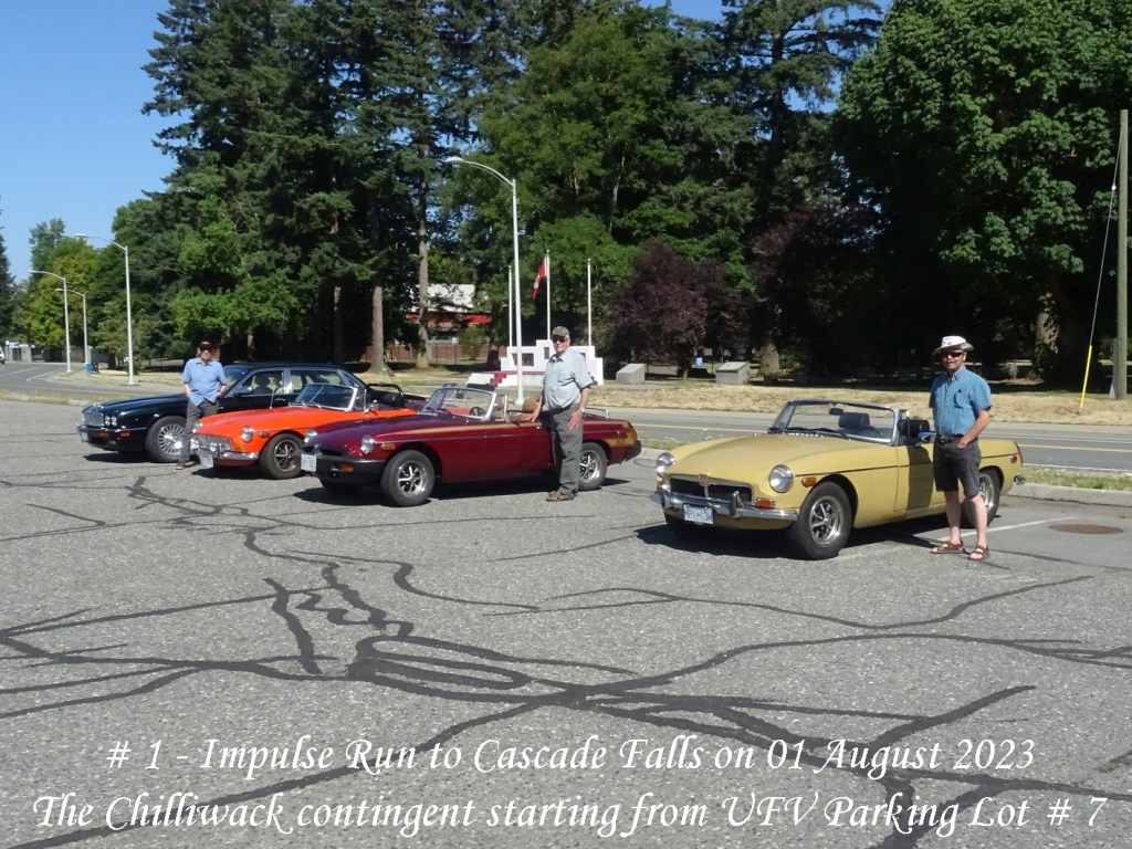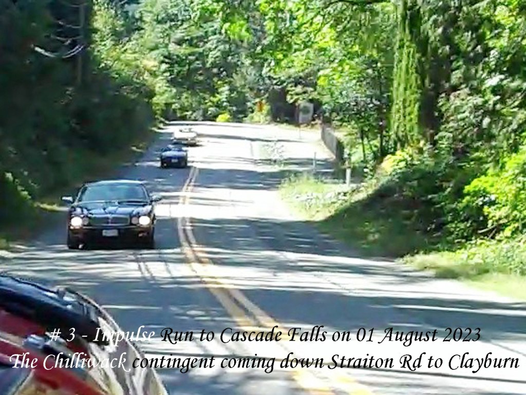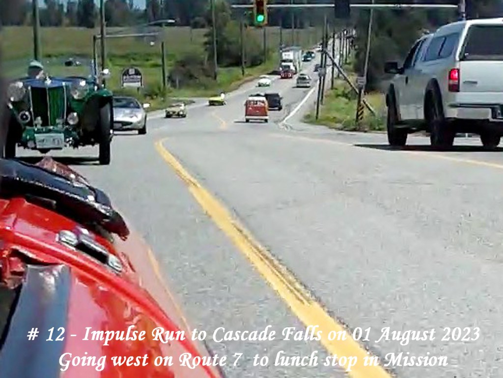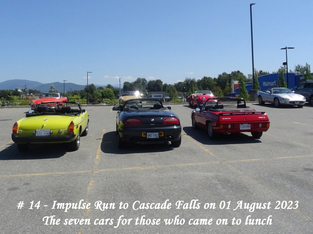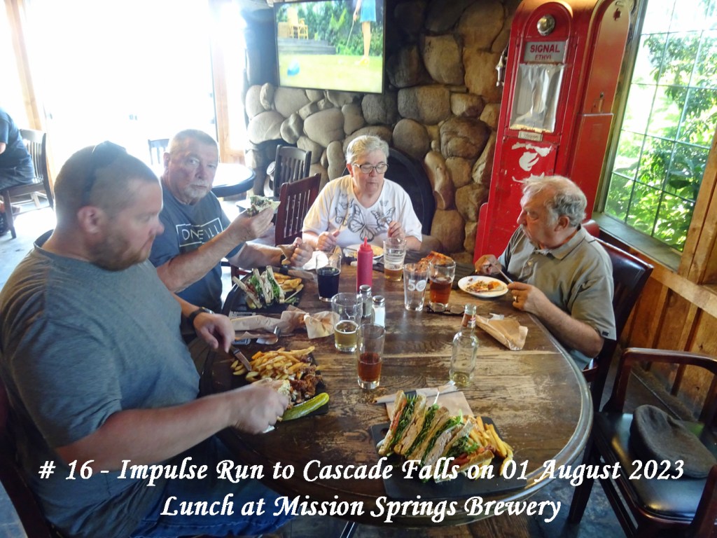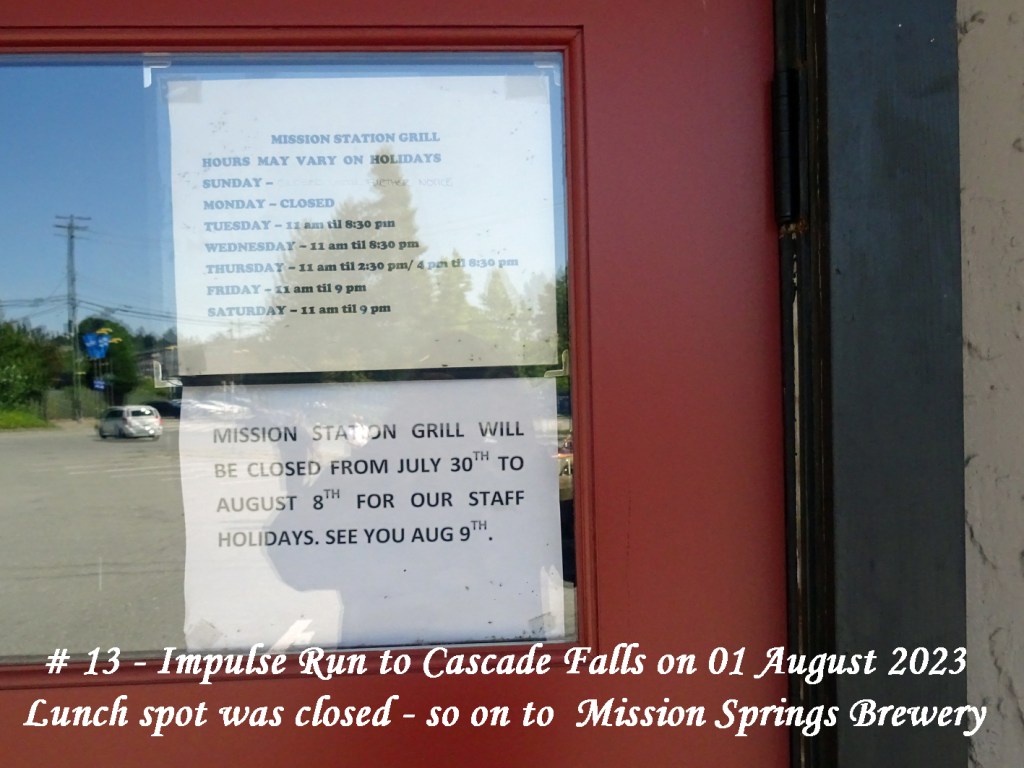 On Saturday, 29 August a text was circulated advising a Run was planned for Tuesday, 01 August to Cascade Falls with lunch at the Mission Station Grill. Meet-up for Chilliwack area members would be at UFV carpark # 7, 10:25:am for a 10:30am start. For Abbotsford members it would be at Lepp Farm Market, 11:15am for an 11:30am start along with the Chilliwack contingent.