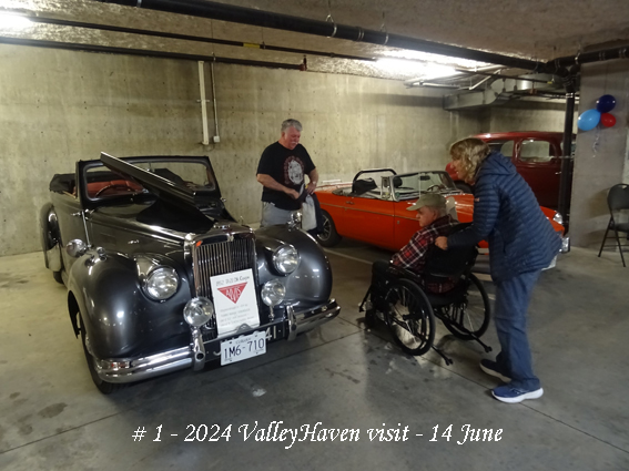Given the weather, the barbeque lunch was served inside and then the residents came down to see the cars. It was clear that, for some, the various models brought back memories of similar ones owned at one time or another, and for others, it was memories of road trips made including ones from coast to coast. So, the visit was a success and fulfilled its purpose of bringing some gladness and sunshine back into twilight years….